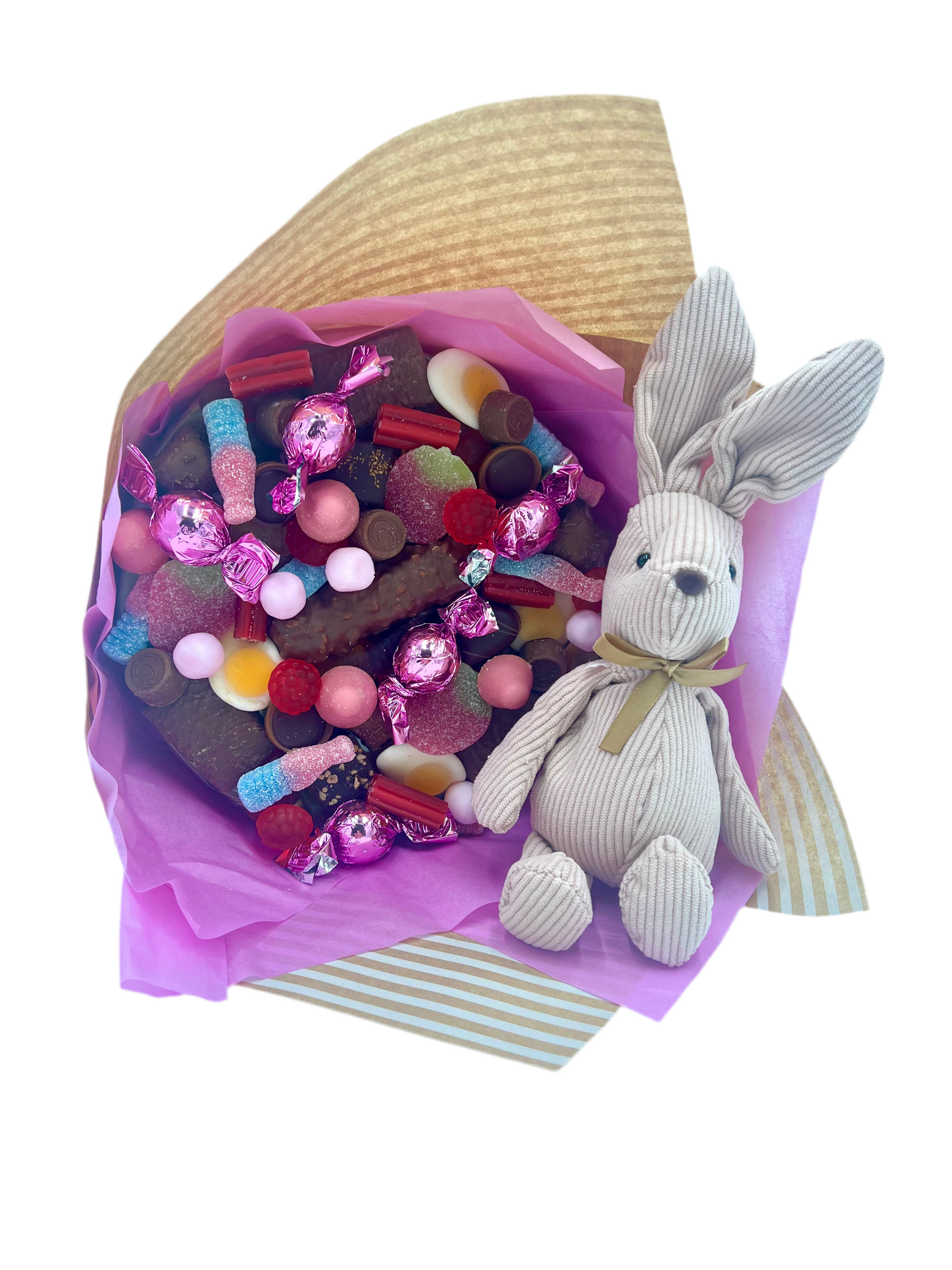 En oplagt gave til nybagte forældre, som fortjener noget lækkert i den dejlige tid og en sød kanin til den lille ny.